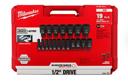 MILW SHOCKWAVE IMPACT DUTY 1/2" DRIVE SAE DEEP 6 POINT SOCKET SET -19 PC